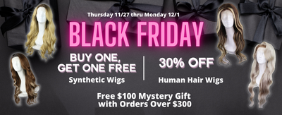 BLACK FRIDAY! 💸 BOGO SYNTHETIC WIGS 🩷 30% OFF HUMAN HAIR WIGS 💸 Free $100 Gift on Orders Over $300
